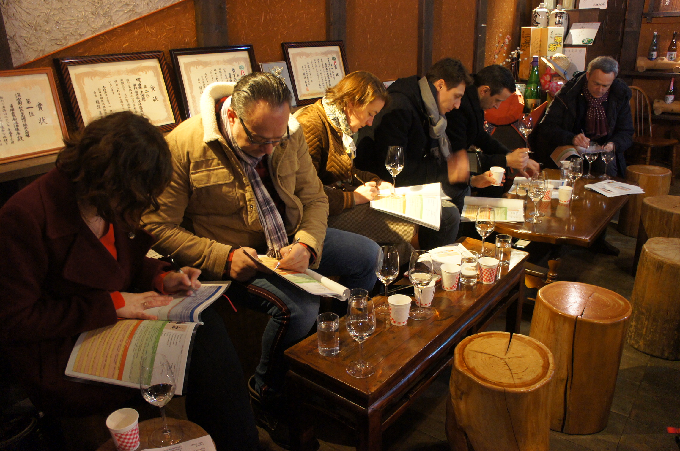 テイスティングにて舩坂酒造店の醸造している日本酒の官能評価をされておりました。